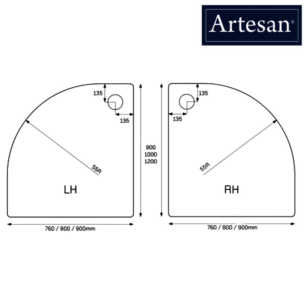 Artisan 900 x 760 Offset Quad Shower Tray Right Hand