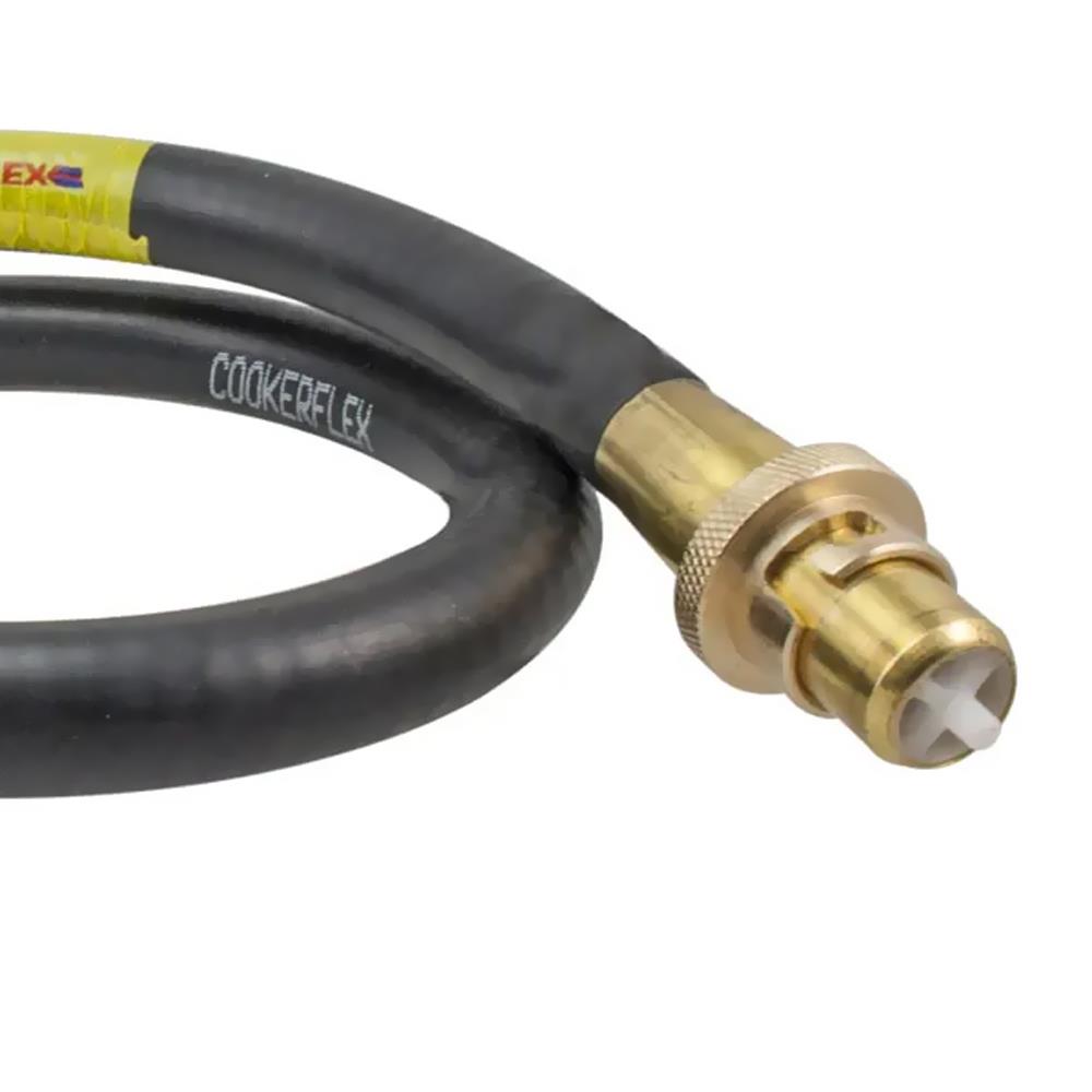 Cooker hose 1/2″ nominal size hose designed to be fitted to the 1/2″ straight bayonet socket (B593) or angled bayonet socket (B553). Incorporates a patented Firesafe fusible plug which will shut off the gas supply at the socket in the event of a fire. For natural gas and hydrogen.