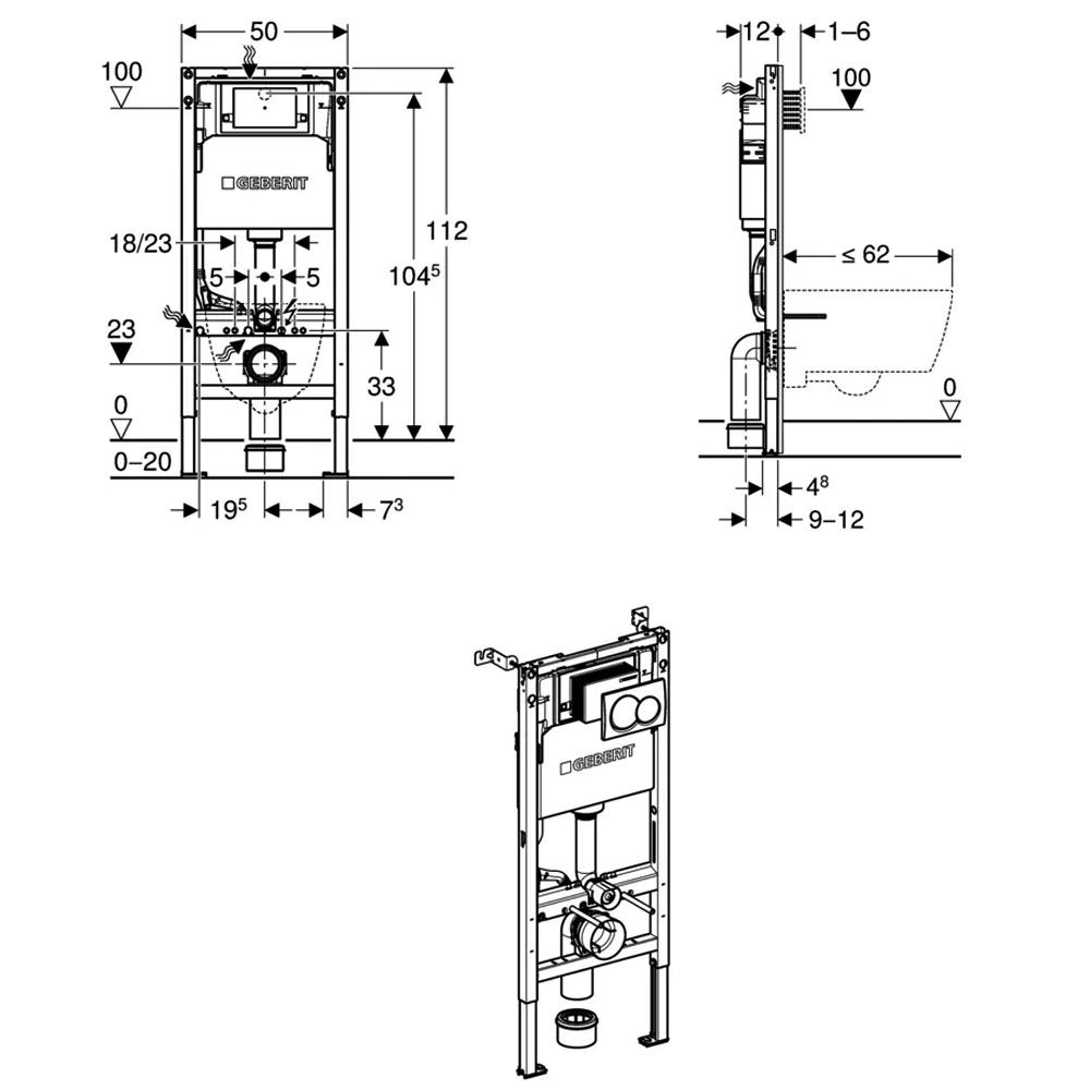 Geberit Duofix 1120mm Wall Hung WC Frame Square Flush Plate