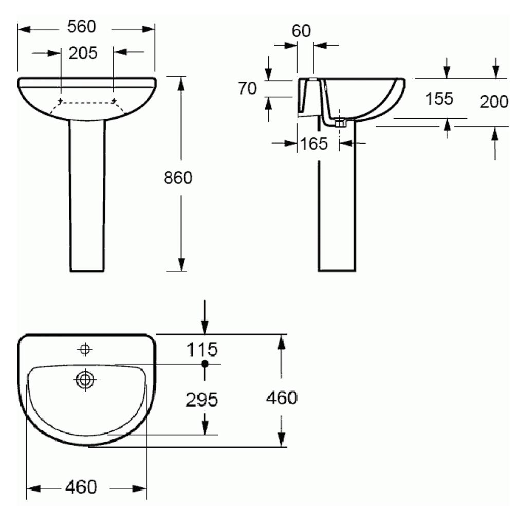 Imex Ivo 560mm Basin 1 Tap Hole & Half Pedestal Features:
