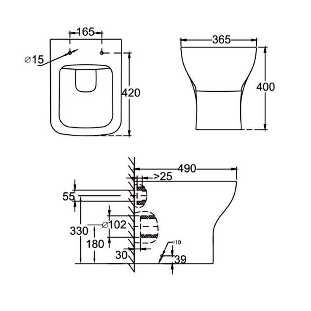 Primo Square Rimless BTW Pan With Soft Close Seat