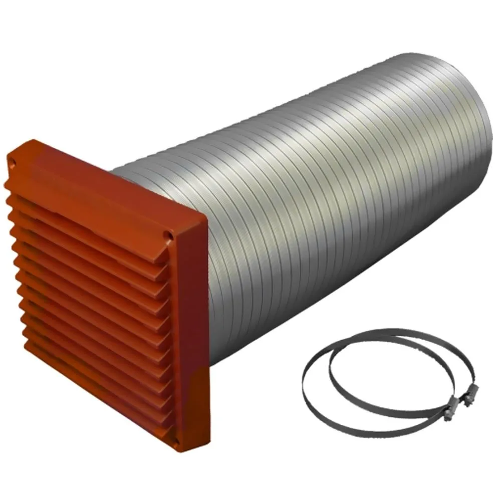 Direct ventilation kit for stoves with 100mm diameter air inlets. Ducting attaches to the back of the stove via the manufacturers inlet allowing combustion air direct from the outside.