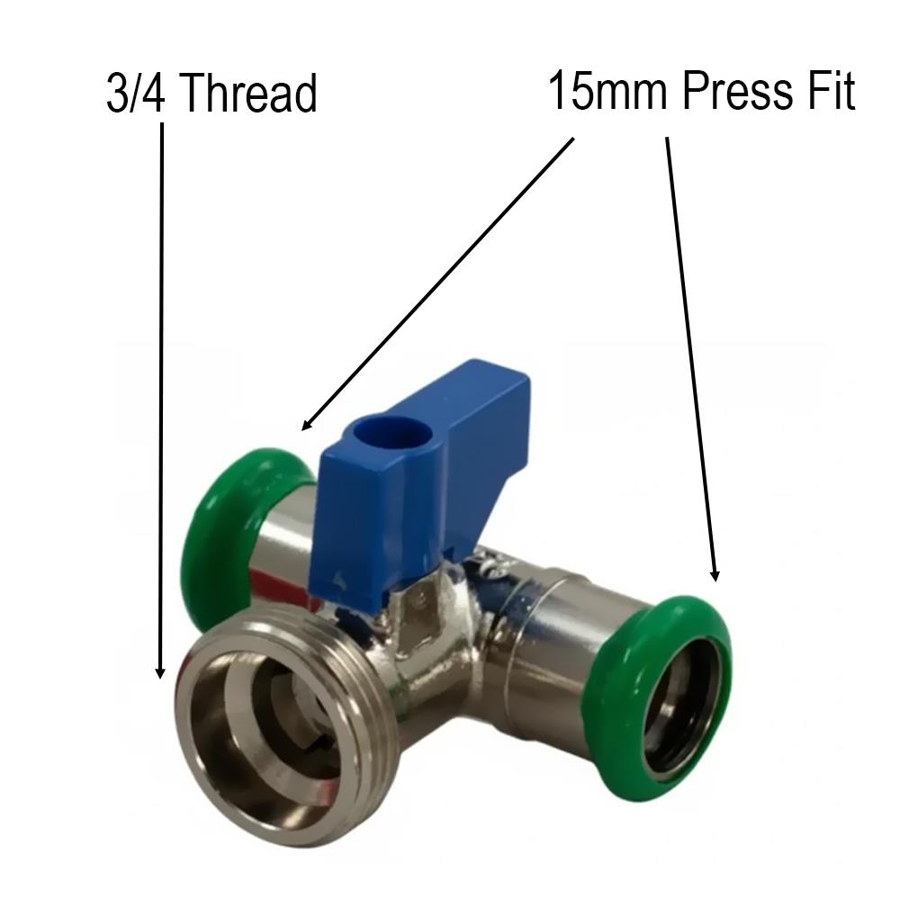 PEGASUS Press Fit 15mm Washine Machine Valve Tee