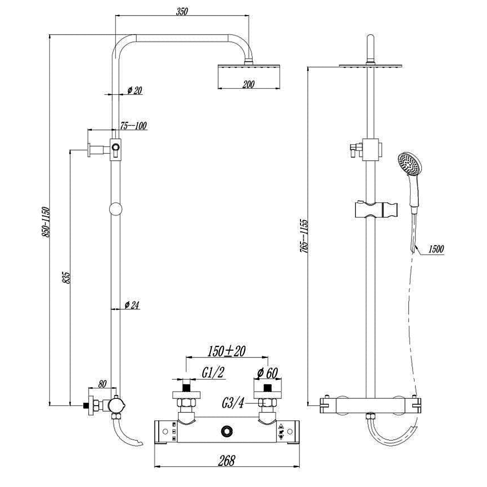 Make your bathroom a sleek and modern space with the Kartell Plan Range’s stylish and high-quality showering collection. This thermostatic bar shower with sliding rail and drenched shower head kit is a perfect, simple shower solution for those seeking reliable quality and modern design at a super competitive price