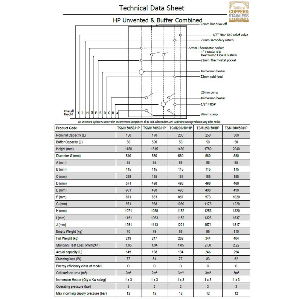 Telford 300L Indirect Heat Pump Cylinder with 50L Buffer