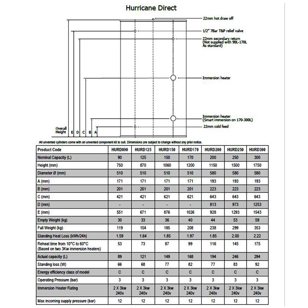 Telford Hurricane 200L Direct Features: