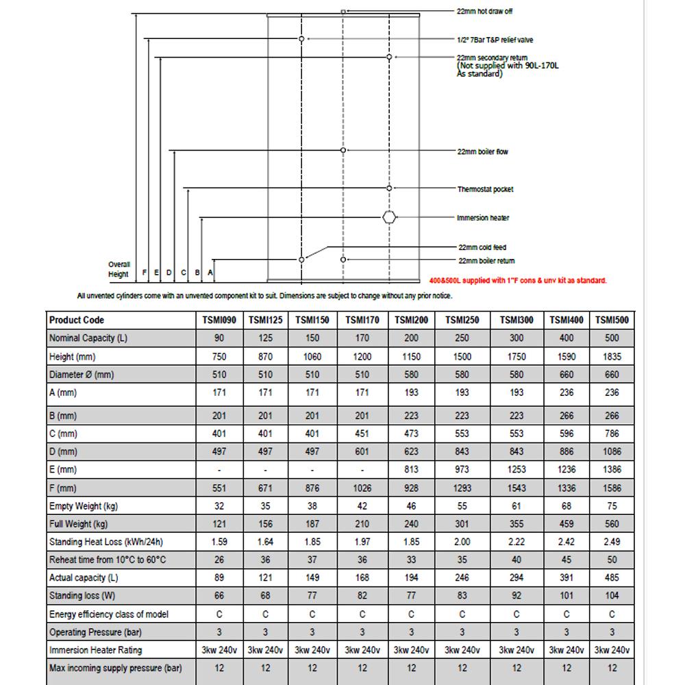 Telford Hurricane 90L Indirect Unvented Cylinder