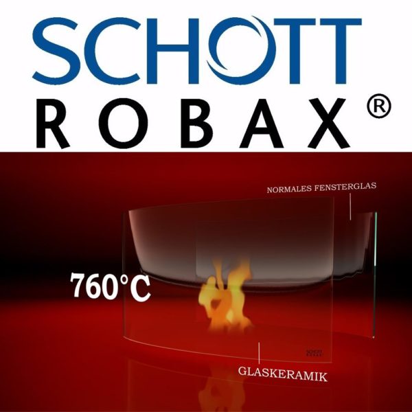 - Material: Schott Robax high-temperature resistant ceramic glass