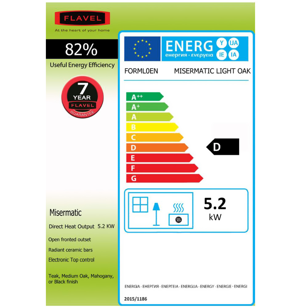 The Flavel Misermatic Teak outset gas fire is made to fit on your fireplace hearth, with an impressive 82% efficiency it wont dent your bank to run. The heat out put ranges from 1KW on low to 5.2 KW on high