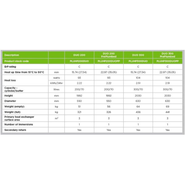 Gledhill StainlessLite Plus Heat Pump Duo 300L Features: