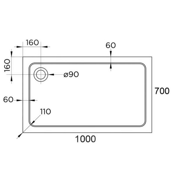 1000 x 700 Low Profile Rectangle Shower Tray: