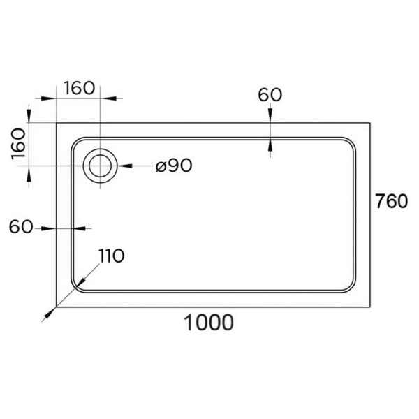 1000 x 760 Low Profile Rectangle Shower Tray: