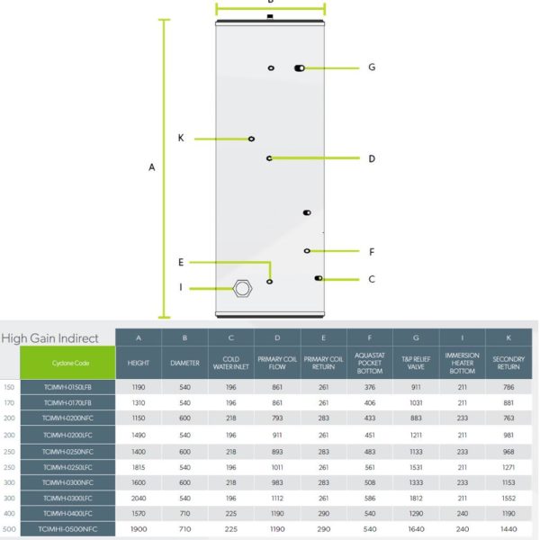 Joule Cyclone High Gain Indirect Cylinder Features: