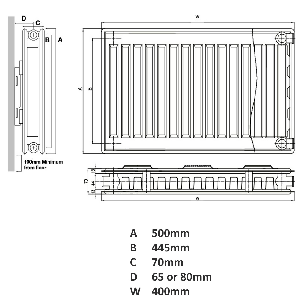 - Size – 500 High x 400 Wide Type 21 / Double Convector P+ DPSC