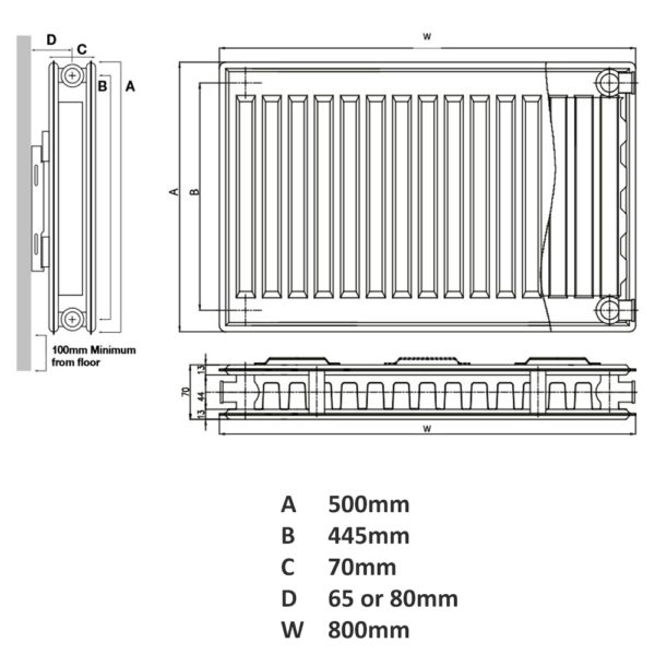 - Size – 500 High x 800 Wide Type 21 / Double Convector P+ DPSC