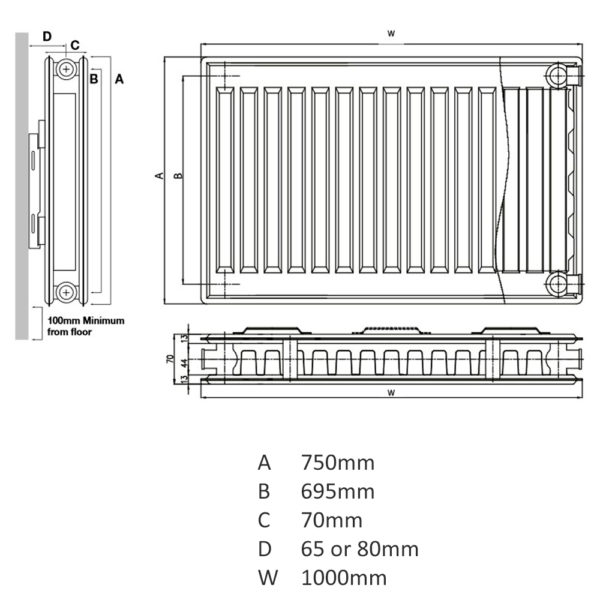 - Size – 750 High x 1000 Wide Type 21 / Double Convector P+ DPSC