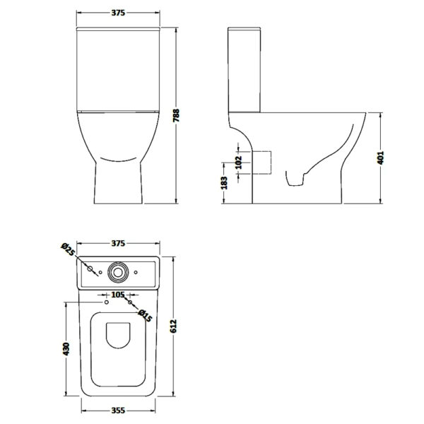Nuie Ava Rimless Toilet With Soft Close Seat Features: