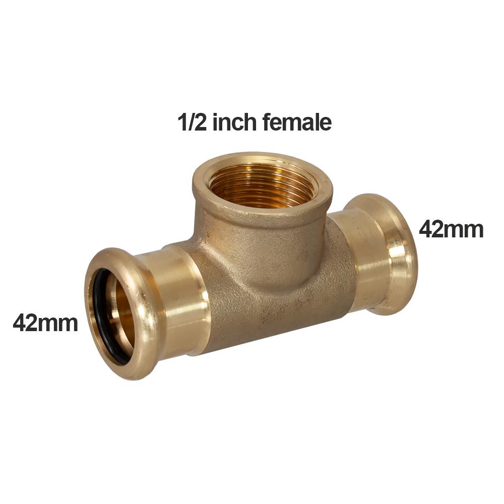 PEGASUS Press Fit Reducing Tee Female 42mm X 42mm X 1/2″ WRAS Approved Fittings