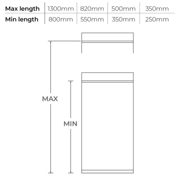 Adjustable Length extends from 350mm to 500mm.