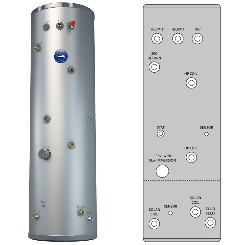 UK Cylinders FlowCyl Heat Pump Solar Twin Coil 250L